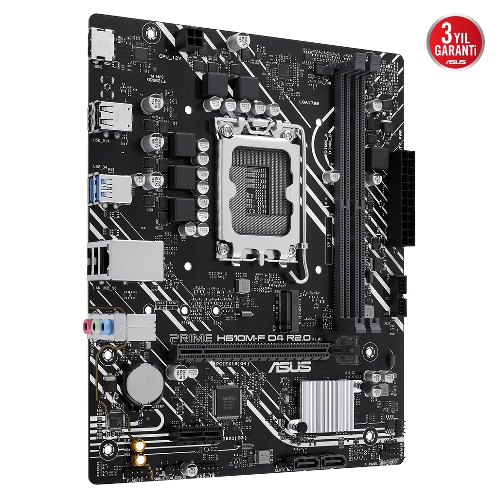 PCIe 3.0 üzerinden 32 Gbps’e kadar veri aktarım hızlarına destek veren bir M.2 yuvası barındıran PRIME H610M-F D4 R2.0, işletim sistemi veya uygulamalar için kullanılan sürücülerde daha hızlı açılış ve yükleme süreleri elde edilmesini sağlar.