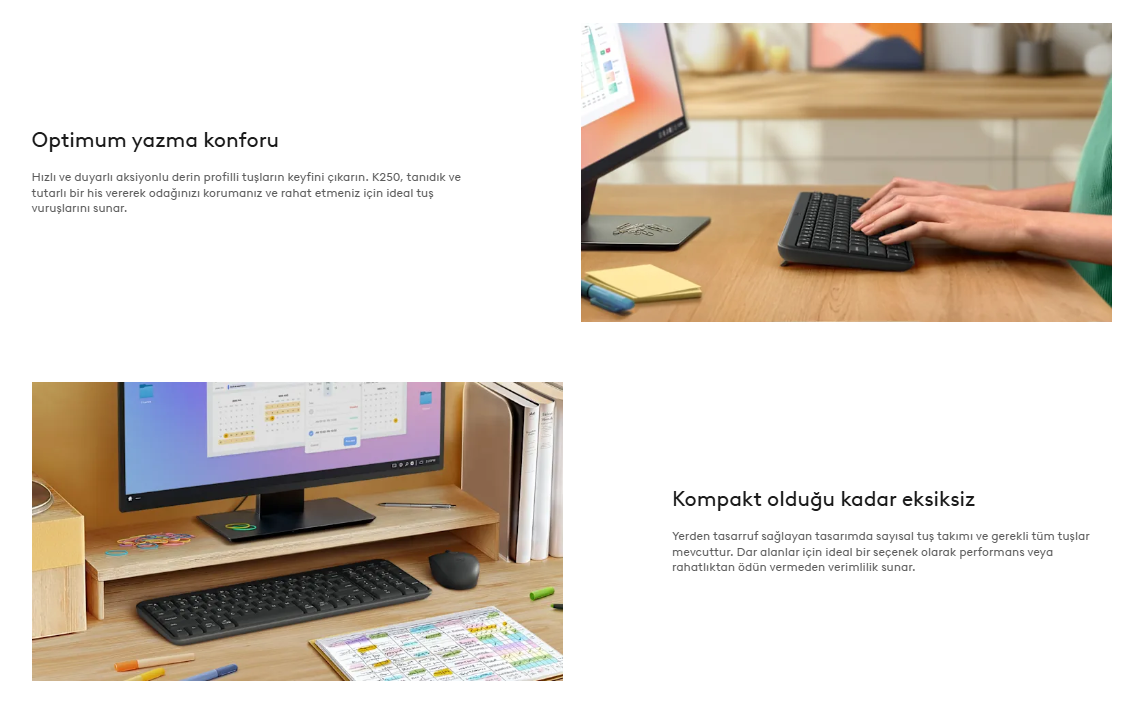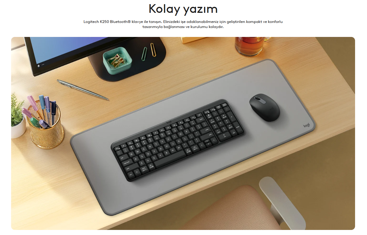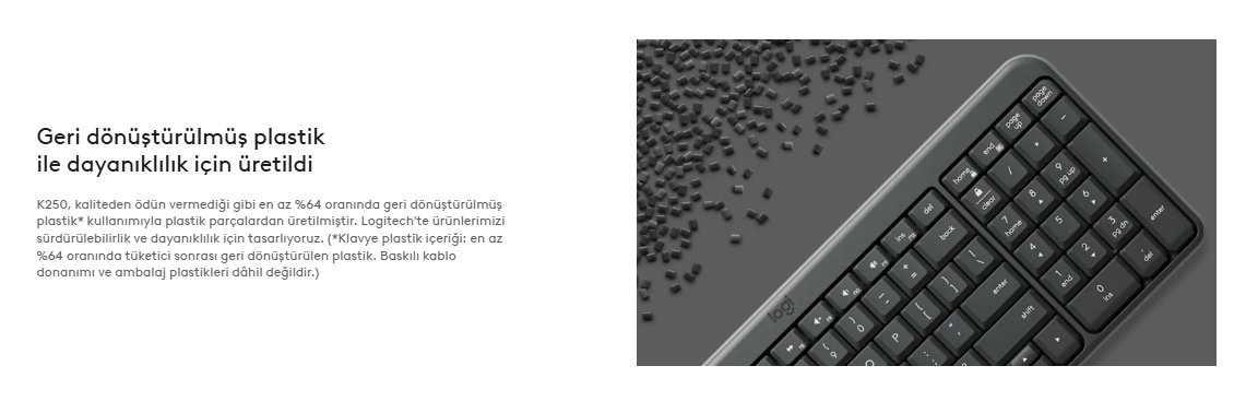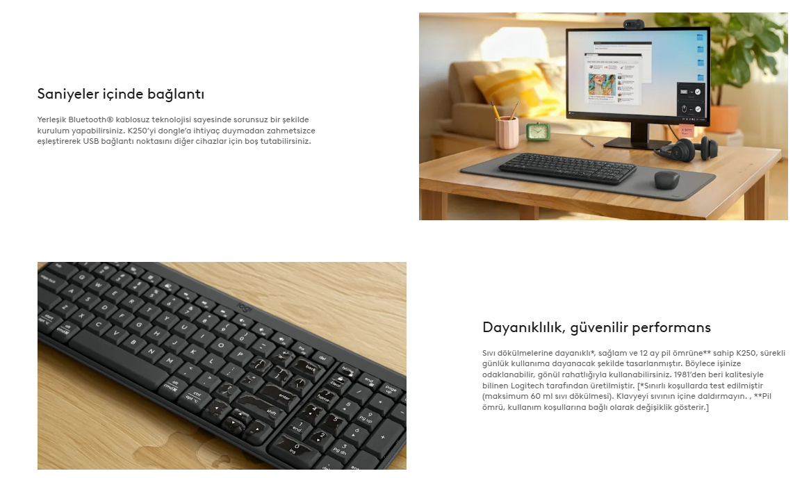 LOGITECH K250, Siyah, 920-013460, Bluetooth, Türkçe Q, Multimedya, Kompakt Klavye