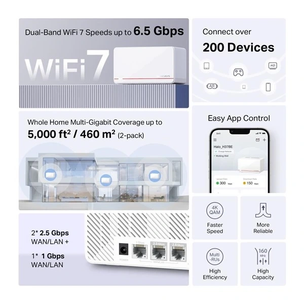 MERCUSYS HALO H37BE (2-Pack) WIFI7 BE6500 DUAL BAND ROUTER 2-li paket