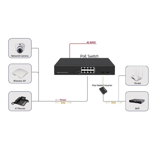 DAHUA 10port PoE 90w PFS3210-8ET2GF-96 GIGABIT 2xSFP Yönetilemez Switch